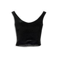 Off-Shoulder Top in black bi-stretch velvet PRODUCT DETAILS • Bi-stretch velvet • Round neckline • Sleeveless • Off-shoulder straps • Made in Italy Main material: 78% triacetate, 22% polyester