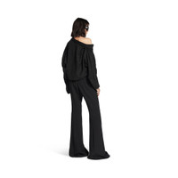 One Shoulder Shirt in black fluid poplin for Women PRODUCT DETAILS • Fluid lyocell poplin • Off-shoulder asymmetric neckline • Flat collar • Buttoned front and cuffs • Made in Italy Main material: 100% lyocell>br/>Embroidery: 100% polyester