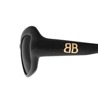 Palazzo Cat Sunglasses in black bio-based injected nylon with grey lenses are from several looks of Balenciaga Fall 24 Collection. PRODUCT DETAILS • Temple length: 5,7 inch • Bridge length: 0,7 inch • Bio-based injected nylon frame and temples (65% bio-based) • Cat shape • Standard fit • Shiny gold Monaco BB logo screwed on both temples • Lasered logo on the right lens • Flex hinges for increased comfort • Lens material: Bio-Nylon • Lens category: 3 • 100% UVA/UVB protection • Not suitable for optical conversion • Made in Italy • BB0353S Material: polyamide
