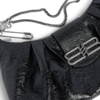 Pamela Shoulder Bag Medium in black Arena lambskin with aged-silver hardware is from look 23 of Balenciaga Spring 26 Collection. PRODUCT DETAILS • Arena lambskin • Shoulder bag • One handle with safety pin opening • Adjustable and removable shoulder chain strap • Adjustable and removable leather strap • Shoulder and hand carry • Aged-silver BB icon logo hardware • Balenciaga logo engraved on zipper puller and safety pin • Magnet flap and zipped closure • 1 main compartment • 1 inner zipped pocket • Cotton canvas lining • Made in Italy Material: lambskin