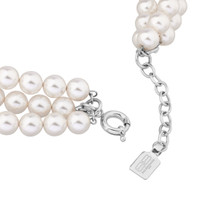 Pearl 3-Row Choker in shiny silver brass, stainless steel and white glass PRODUCT DETAILS • Dimensions: L6,7 x H7,1 x W1,38 inch • Brass, glass and stainless steel • Choker • 3-row with glass pearls • Plate with BB icon logo engraved • Clasp closure • Made in Italy • This item is nickel-free, lead-free, and hypoallergenic Material: brass, glass, steel