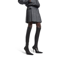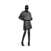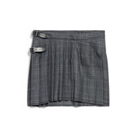 Pleated Mini Skirt in grey shadow tartan for Women PRODUCT DETAILS • Wool tartan • Mini skirt • Pleated front • 2 leather belt closure on left side • Silver-toned Balenciaga engraved buckle • Fringed trim on right-hand side of back • Made in Italy Main material: 100%woo