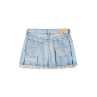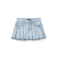 Pleated Mini Skirt in light blue cotton denim for Women is from look 46 of Balenciaga Fall 25 Collection. PRODUCT DETAILS • Cotton denim • Pleated • Worn-out details • Covered zip fly • 5 pockets • 5 large belt loops • Balenciaga engraved flex buttons • Mini length • Made in Italy Main material: 100% cotton