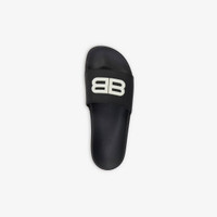 Pool Slide Sandal Glow The Dark in black rubber PRODUCT DETAILS • Rubber • Slide Sandal • Molded rubber footbeds • 3D BB logo Glow In The Dark effect on the strap • Embossed Balenciaga logo at back • Tone-on-tone sole and insole • Made in Italy • Wipe with a soft cloth Material: 100% rubber