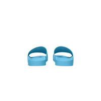 Pool Slide Sandal in light blue and black rubber PRODUCT DETAILS • Rubber • Slide Sandal • Molded rubber footbeds • 3D Balenciaga logo on the strap • Tone-on-tone sole and insole • Made in Italy • Wipe with a soft cloth Material: 100% TPU
