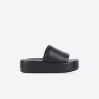 Rise Sandale in black and white smooth nappa lambskin PRODUCT DETAILS • Smooth nappa lambskin • Slide Sandal • Open rounded toe • Balenciaga logo printed on the back of sole • Tone-on-tone sole • Made in Italy • Wipe with a soft cloth Material: 100% lambskin