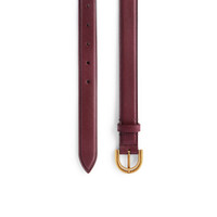 Rodeo Belt in dark burgundy smooth calfskin, aged-gold hardware PRODUCT DETAILS • Dimensions: Width: 1 inch • Smooth calfskin • Buckle closure • Aged-gold hardware • 5 notches on the belt • Tone-on-tone leather loop • Made in Italy Material: calfskin