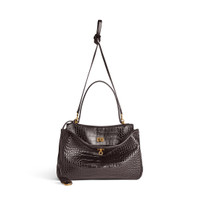Rodeo Handbag Medium in espresso crocodile embossed calfskin, aged-gold hardware PRODUCT DETAILS • Dimensions: L13,8 x H9,2 x W4,3 inch • Crocodile embossed calfskin • Handbag • One handle (drop: 8,1 inch) • Removable shoulder strap (drop: 22,6 inch) • Removable cloche cles with two split rings • Aged-gold hardware • Turn lock closure • Wide front pocket • 1 main compartment • 1 inner zipped pocket • 2 flat pockets at back • Side snaps • 4 brass feet • Nappa lambskin lining • Made in Italy Material: calfskin