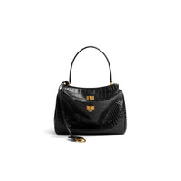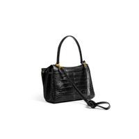 Rodeo Handbag Small in black crocodile embossed calfskin, aged-gold hardware PRODUCT DETAILS • Dimensions: L11,4 x H7,9 x W3,9 inch • Crocodile embossed calfskin • Handbag • One handle (drop: 7,3 inch) • Removable shoulder strap (drop: 22,2 inch) • Removable cloche cles with two split rings • Aged-gold hardware • Turn lock closure • Wide front pocket • 1 main compartment • 1 inner zipped pocket • 2 flat pockets at back • Side snaps • 4 brass feet • Nappa lambskin lining • Made in Italy Material: calfskin