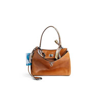 Rodeo Handbag Small in tan cowboy in vegetable tanned lambskin with charms, aged-silver hardware PRODUCT DETAILS • Vegetable tanned lambskin with charms • Handbag • One handle • Removable shoulder strap • Removable cloche cles with two split rings • Aged-silver hardware • Turn lock closure • Wide front pocket • 1 main compartment • 1 inner zipped pocket • 2 flat pockets at back • Side snaps • 4 brass feet • Nappa lambskin lining • Made in Italy Material: lambskin, brass, zamak