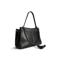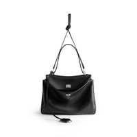 Rodeo Medium Handbag in black smooth calfskin, aged-silver hardware PRODUCT DETAILS • Dimensions: L13,8 x H9,2 x W4,3 inch • Smooth calfskin • Handbag • One handle (drop: 8,1 inch) • Removable shoulder strap (drop: 22,6 inch) • Removable leather key holder with two split rings • Aged-silver hardware • Turn lock closure • Wide front pocket • 1 main compartment • 1 inner zipped pocket • 2 flat pockets at back • Side snaps • 4 brass feet • Nappa lambskin lining • Made in Italy Material: calfskin