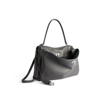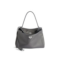 Rodeo Medium Handbag in grey smooth calfskin, aged-silver hardware PRODUCT DETAILS • Dimensions: L13,8 x H9,2 x W4,3 inch • Smooth calfskin • Handbag • One handle (drop: 8,1 inch) • Removable shoulder strap (drop: 22,6 inch) • Removable leather key holder with two split rings • Aged-silver hardware • Turn lock closure • Wide front pocket • 1 main compartment • 1 inner zipped pocket • 2 flat pockets at back • Side snaps • 4 brass feet • Nappa lambskin lining • Made in Italy Material: calfskin