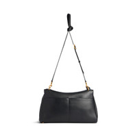Rodeo Shoulder Bag in black smooth calfskin, aged-gold hardware PRODUCT DETAILS • Dimensions: L12,8 x H8,7 x W3,5 inch • Smooth calfskin • Shoulder bag • Adjustable and removable strap (drop: 19,4 inch) • Crossbody and shoulder carry • Removable cloche cles with two split rings • Aged-gold hardware • Wide front pocket • Turn lock closure • 1 main compartment • 1 inner zipped pocket • 2 flat pockets at back • 4 brass feet • Nappa lambskin lining • Made in Italy Material: calfskin