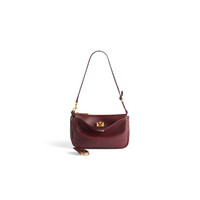 Rodeo Sling Pochette in dark burgundy smooth calfskin, aged-gold hardware PRODUCT DETAILS • Dimensions: L8,7 x H4,7 x W5 inch • Smooth calfskin • Sling pochette • One shoulder strap (drop: 9,8 inch) • Removable cloche cles with two split rings • Aged-gold hardware • Wide front pocket with turn lock closure • 1 main zipped compartment • 3 inner card slots • Nappa lambskin lining • Made in Italy Material: calfskin