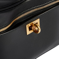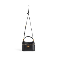 Rodeo Vanity in black smooth calfskin, aged-gold hardware PRODUCT DETAILS • Dimensions: L7,1 x H5,1 x W3,3 inch • Smooth calfskin • One handle (drop: 2,3 inch) • Adjustable and removable strap (drop: 23,6 inch) • Crossbody, shoulder and hand carry • Front flat pocket with turn lock closure • Balenciaga logo engraved at front • Aged-gold hardware • Zipped closure • 1 main compartment • 3 inner card slots • Suede-like fabric lining • Made in Italy Material: calfskin