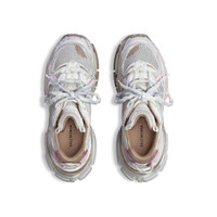Runner 2.0 Sneaker in taupe and pink mesh, polyurethane and polyester PRODUCT DETAILS • Leather free • Sneaker • Polyurethane and polyester • Worn-out effect • Printed size at the edge of the toe • Debossed size at back • Runner logo printed on exterior • Balenciaga logo debossed on the tongue • Balenciaga logo at the back of the heel • Back pull-on tab • Made in China Upper: polyurethane, polyester - Sole: rubber, TPU, EVA, polyurethane - Insole: foam