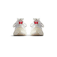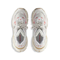 Runner 2.0 Sneaker in white, beige and red mesh and polyurethane PRODUCT DETAILS • Leather free • Sneaker • Mesh and polyurethane • Worn-out effect • Printed size at the edge of the toe • Debossed size at back • Runner logo printed on exterior • Balenciaga logo debossed on the tongue • Balenciaga logo at the back of the heel • Back pull-on tab • Made in China • Wipe with a soft cloth Material: 65% polyurethane, 35% polyester