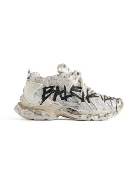 Runner Sneaker in multicolor mesh and nylon PRODUCT DETAILS • Leather free • Sneaker • Mesh and nylon • Worn-out effect • Printed size at the edge of the toe • Embossed size at back • Runner logo printed on exterior • Balenciaga logo embroidered on the tongue • Balenciaga logo at the back of the heel • Back pull-on tab • Made in China Material: polyurethane, polyester