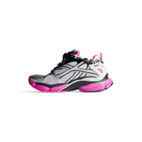 Runner Sneaker in silver, black and neon pink mesh and nylon PRODUCT DETAILS • Leather free • Sneaker • Mesh and nylon • Worn-out effect • Printed size at the edge of the toe • Embossed size at back • Runner logo printed on exterior • Balenciaga logo embroidered on the tongue • Balenciaga logo at the back of the heel • Back pull-on tab • Made in China Material: polyurethane, polyester