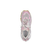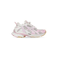 Runner Sneaker in white, pink, beige and black mesh and nylon PRODUCT DETAILS • Leather free • Sneaker • Mesh and nylon • Worn out effect • Printed size at the edge of the toe • Embossed size at back • Runner logo printed on exterior • Balenciaga logo embroidered on the tongue • Balenciaga logo at the back of the heel • Back pull-on tab • Made in China • Wipe with a soft cloth Material: 65% polyurethane, 35% polyester