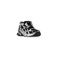 Runner Sneaker in white and black mesh and nylon PRODUCT DETAILS • Leather free • Sneaker • Mesh and nylon • Worn out effect • Printed size at the edge of the toe • Embossed size at back • Runner logo printed on exterior • Balenciaga logo embroidered on the tongue • Balenciaga logo at the back of the heel • Back pull-on tab • Made in China • Wipe with a soft cloth Material: 65% polyurethane, 35% polyester