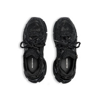 Runner Sneaker in black polyurethane and polyester with rhinestones PRODUCT DETAILS • Leather free • Sneaker • Polyamide and polyurethane • Worn-Out effect • Printed size at the edge of the toe • Debossed size at back • Runner logo printed on exterior • Balenciaga logo embroidered on the tongue • Balenciaga logo at the back of the heel • Back pull-on tab • Made in China Upper: polyamide, polyurethane - Sole: rubber, EVA, TPU, polyurethane - Insole: foam