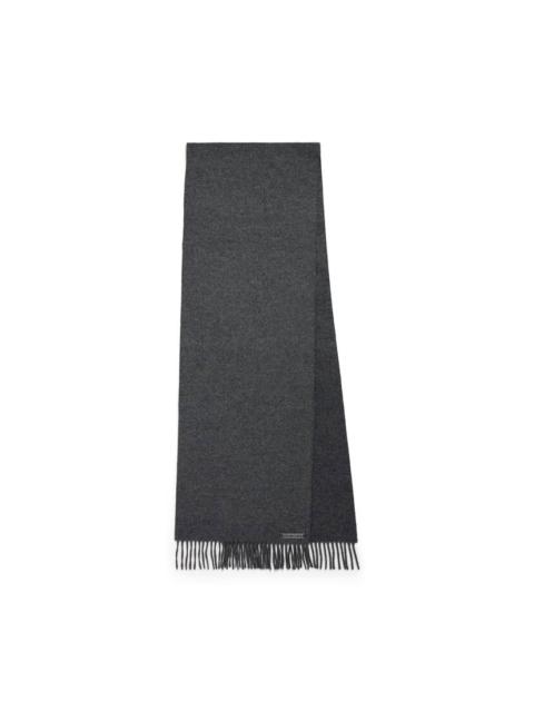 Scarf in navy cashmere blend PRODUCT DETAILS • Cashmere and wool knit • Can be doubled around the neck • Balenciaga metal plate • Fringed finishing • Made in Italy Main material: 94% cashmere, 6% wool