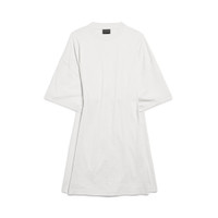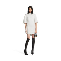 Semi Fitted Dress in dirty white dry jersey for Women is from look 58 of Balenciaga Fall 25 Collection. PRODUCT DETAILS • Dry jersey • Semi-fitted construction: Fitted at front, loose panel at back • Crewneck • Short sleeves • Made in Portugal Main material: 100% cotton