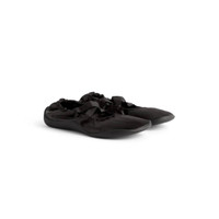 Shibuya Flat Ballerina in black satin PRODUCT DETAILS • Acetate, polyamide and elastane • Ballerina • Round toe • Ergonomic sole • Elasticated upper with Balenciaga logo printed • Tone-on-tone Balenciaga logo embroidered on the side • Balenciaga logo debossed on the back of the heel • Made in Italy Upper: acetate, polyamide, elastane - Sole: TPU - Insole: lambskin