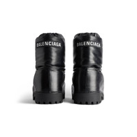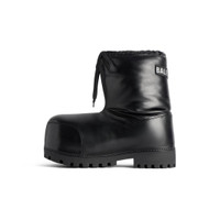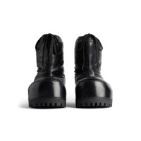 Alaska Low Boot in black shiny super soft calfskin PRODUCT DETAILS • Shiny super soft calfskin • Boot • Extra round toe • Exaggerated proportions • Balenciaga rubber tag at back • Drawstring at top • Made in Italy • Wipe with a soft and dry natural-colored cloth Material: 100% calfskin