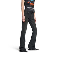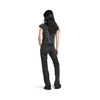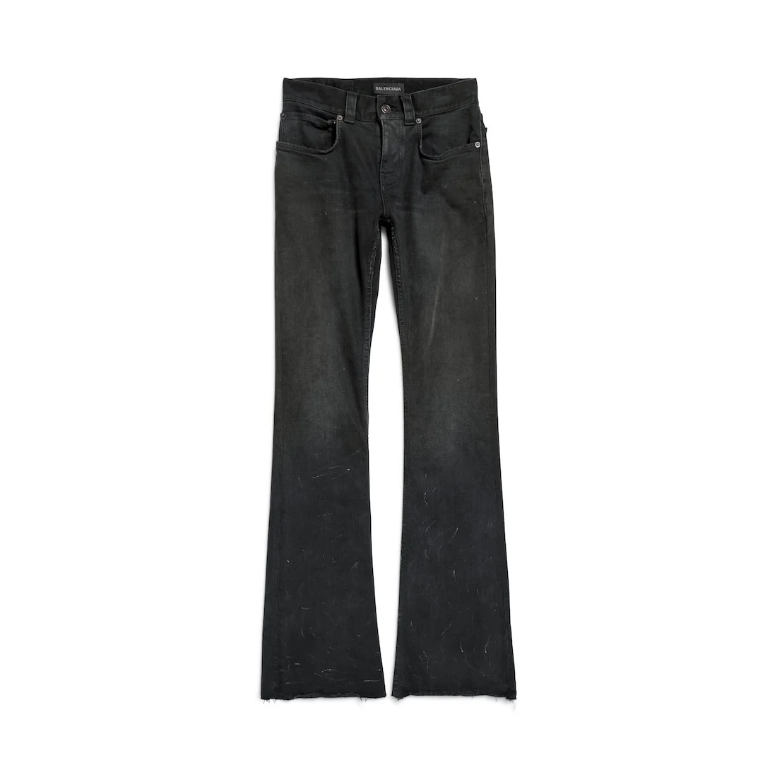 Slim Fit Bootcut Pants in black cotton denim for Women PRODUCT DETAILS • Cotton denim • Mid-waist • Covered zip fly • 5 belt loops • 5 pockets • Balenciaga engraved flex buttons • Made in Italy Main material: 99% cotton, 1% elastane