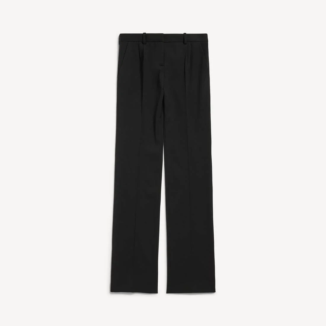 Slim Tailored Pants in black stretch tailoring twill are from several looks of Balenciaga's Summer 26 Collection. PRODUCT DETAILS • Stretch wool twill • Tailored pants • Slim fit • Covered zip fly with snap button • 4 belt loops • 2 slash pockets at front • 1 buttoned pocket at back • Creased legs • Made in Italy Main material: 98% wool, 2% elastane