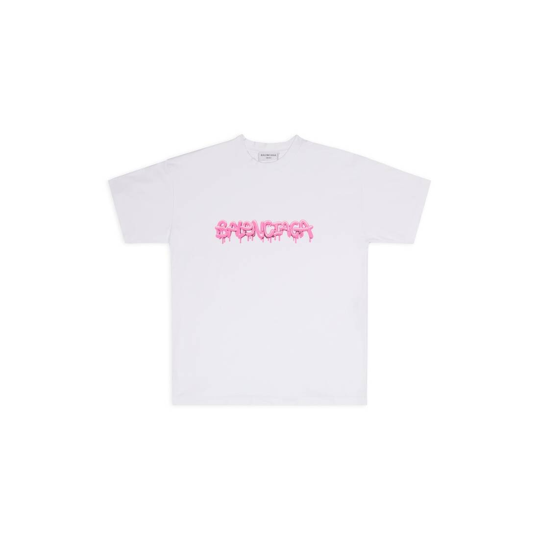 Slime T-Shirt Medium Fit in white and pink vintage jersey PRODUCT DETAILS • Vintage jersey • This item is unisex • Medium Fit • Crewneck • Slime artwork printed at front • Made in Portugal • Cold machine wash • Model is 177 cm / 5'80'' and is wearing a FR size S Material: 100% cotton