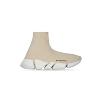 Speed 2.0 Sneaker in light beige recycled knit, white and transparent sole unit PRODUCT DETAILS • Recycled technical 3D knit • Ultra-articulated molded sole unit • "No Memory” sole technology • Extra light: nearly barefoot feel • Contrasted logo printed on exterior • Embossed logo on the back of sole • Made in Italy • Do not machine wash and wipe with a soft cloth Material: 92% polyester, 8% elastane
