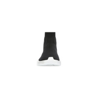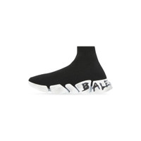 Speed 2.0 Graffiti Sneaker in black recycled knit and white sole unit PRODUCT DETAILS • Technical 3D knit • Ultra-articulated molded sole unit • "No Memory” sole technology monocolor sole unit • Extra light: nearly barefoot feel • Balenciaga graffiti logo in color contrast on sole • Embossed logo on the back of sole • Worn-out effect on sole • Made in Italy • Do not machine wash and wipe with a soft cloth Material: 92% polyester, 8% elastane