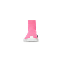 Speed 2.0 Graffiti Sneaker in pink recycled knit and white sole unit PRODUCT DETAILS • Technical 3D knit • Ultra-articulated molded sole unit • "No Memory” sole technology monocolor sole unit • Extra light: nearly barefoot feel • Balenciaga graffiti logo in color contrast on sole • Embossed logo on the back of sole • Worn-out effect on sole • Made in Italy • Do not machine wash and wipe with a soft cloth Material: 92% polyester, 8% elastane