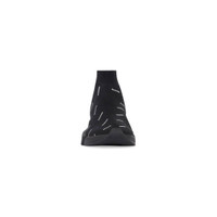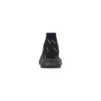 Speed 2.0 Sneaker in black and white allover logo recycled knit PRODUCT DETAILS • Technical recycled knit • Ultra-articulated molded sole unit • "No Memory” sole technology monocolor sole unit • Extra light: nearly barefoot feel • All over Balenciaga logo printed • Embossed logo on the back of sole • Made in Italy • Do not machine wash and wipe with a soft cloth Material: 92% polyester, 8% elastane