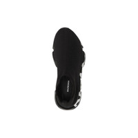 Speed Graffiti Sneaker in black recycled knit, black and white graffiti sole unit PRODUCT DETAILS • Technical 3D knit • Ultra-flexible molded sole unit • “No Memory” sole technology • Extra light: nearly barefoot feel • Balenciaga graffiti logo in color contrast on sole • Made in Italy • Do not machine wash and wipe with a soft cloth Material: 92% polyester, 8% elastane