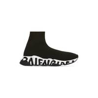 Speed Graffiti Sneaker in black knit,white and black graffiti sole unit PRODUCT DETAILS • Technical 3D knit • Ultra-flexible molded sole unit • “No Memory” sole technology • Extra light: nearly barefoot feel • Balenciaga graffiti logo in color contrast on sole • Made in Italy • Do not machine wash and wipe with a soft cloth Material: 92% polyester, 8% elastane
