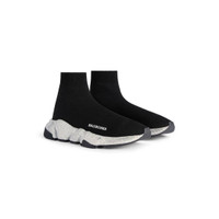 Speed Sneaker in black recycled knit with rhinestones PRODUCT DETAILS • Polyester and elastane • Sole covered with rhinestones • Ultra-articulated molded sole unit • “No Memory” sole technology monocolor sole unit • Extra light: nearly barefoot feel • Contrasted Balenciaga logo printed on exterior • Embossed Balenciaga logo on the back of sole • Made in Italy Upper: polyester, elastane - Sole: TPU - Insole: polyamide