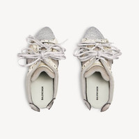 Stapler Sandal Heel in grey polyester and polyurethane PRODUCT DETAILS • Polyester and polyurethane • Stiletto heel • Worn-out effect • Metal staple details on the upper • Raw edge and visible stitching on the upper • 110mm arch • Rhinestones at toe and on the back of the heel • Balenciaga logo on the tongue • Decorative laces • Made in China Upper: polyester, polyurethane - Sole: bullskin - Insole: foam
