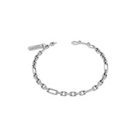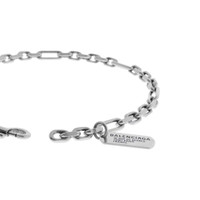 Tags Carabiner Necklace in antique silver brass PRODUCT DETAILS • Dimensions: S: L15,75 x H7,1 x W0,32 inch • Brass • Necklace • Link chain bracelet with tag • Balenciaga logo engraved • Headquarter address engraved • Double-sided carabiner closure • Made in Italy • This item is nickel-free, lead-free, and hypoallergenic Material: brass