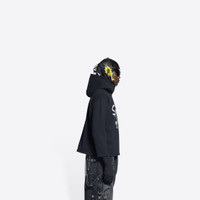 Cropped Hoodie in black medium fleece with an artwork reference to The Simpsons TM & © 20th Television family dressed in recognizable Balenciaga pieces from past seasons. This hoodie is from the look 29 of the Balenciaga’s Spring 22, Clones Collection. PRODUCT DETAILS • Medium fleece • Regular fit • Hood without drawstring • The Simpsons artwork printed at front TM & © 20th Television • Crakling effect artwork • Balenciaga logo embroidered tone-on-tone at back • Made in Portugal • Cold machine wash • Model is 187 cm / 6'13'' and is wearing a FR size S Material: 100% cotton