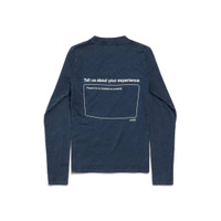Top Rating Long Sleeve Fitted Top in washed navy interlock stretch jersey is from look 25 of Balenciaga's Spring 26 Collection. PRODUCT DETAILS • Interlock stretch jersey • Crewneck • Long sleeves • Top rating artwork printed at front and back • Balenciaga logo embroidered on sleeve • Made in Portugal Main material: 100% cotton