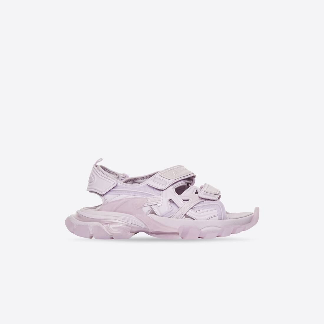 Track Clear Sole Sandal in light purple neoprene and rubber, light purple clear sole unit PRODUCT DETAILS • Neoprene and rubber • 84 overlayered elements on each upper • Balenciaga embossed at the back of the heel • BB embossed on outsole’s front • Back pull-on tab • Balenciaga logo embossing on Velcro strap • Dynamic clear sole design with an augmented back to propels feet forward • Made in China • Wipe with a soft cloth Material: 95% polyurethane + 5% polyester