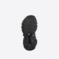 Track Sandal Fake Fur in black fake fur, neoprene, rubber and nylon PRODUCT DETAILS •100% non leather sandal • Fake fur, neoprene, rubber and nylon • 2 velcro straps • 84 overlayered elements on each upper • Balenciaga embossed at the back of the heel • BB embossed on outsole’s front • Back pull-on tab • Balenciaga logo embossing on velcro strap • Dynamic clear sole design with an augmented back to propels feet forward • Made in China • Wipe with a soft cloth Material: 70% polyurethane, 25% polyester, 5% nylon
