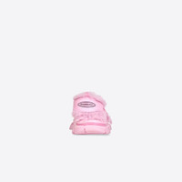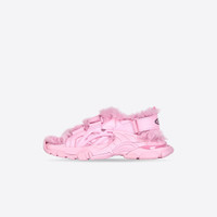 Track Sandale Fake Fur in pink fake fur, rubber, mesh and nylon PRODUCT DETAILS • 100% non leather sandal • Fake fur, neoprene, rubber and nylon • 2 velcro straps • 84 overlayered elements on each upper • Balenciaga embossed at the back of the heel • BB embossed on outsole’s front • Back pull-on tab • Balenciaga logo embossing on velcro strap • Dynamic clear sole design with an augmented back to propels feet forward • Made in China • Wipe with a soft cloth Material: 70% polyurethane, 25% polyester, 5% nylon