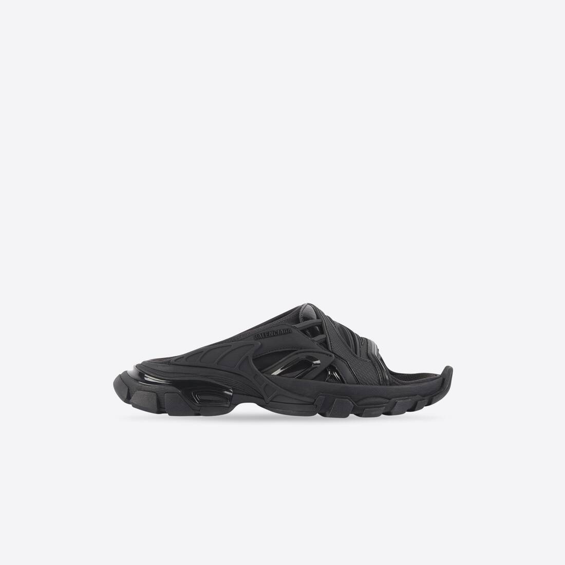 Track Slide Sandal in black neoprene and rubber PRODUCT DETAILS • 100% non leather sandal • BB embossed on outsole’s front • Dynamic sole design with an augmented back to propels feet forward • Made in China • Wipe with a soft cloth Material: 85% polyurethane + 15% polyester
