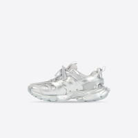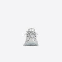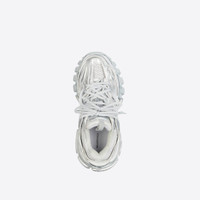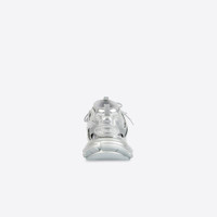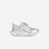 Track Sneaker in silver metallic mesh and nylon PRODUCT DETAILS • Metallic mesh and nylon • Written size at the edge of the toe • Track embossed at the back of the heel • BB embossed on front of the outsole • Balenciaga printed on the exterior • Balenciaga embossed on the tongue • Double laces knotted in a usual equipment way • Back pull-on tab and tongue pull-on tab • Dynamic sole design with an augmented back to propels feet forward • Made in China • Wipe with a soft cloth Material: 75% polyurethane + 21% polyester + 4% nylon