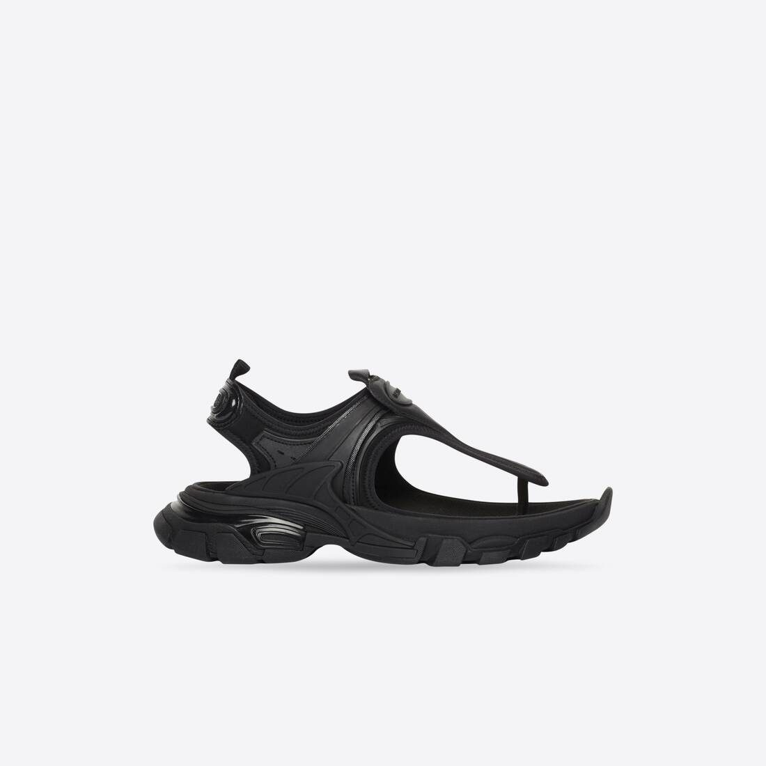 Track Thong in black neoprene and rubber PRODUCT DETAILS • 100% non leather thong • Neoprene and rubber • Slip on thong • Balenciaga logo embossing on front strap • Balenciaga embossed at the back • BB embossed on outsole’s front • Back pull-on tab • Made in China • Wipe with a soft cloth Material: 65% polyurethane + 35% polyester